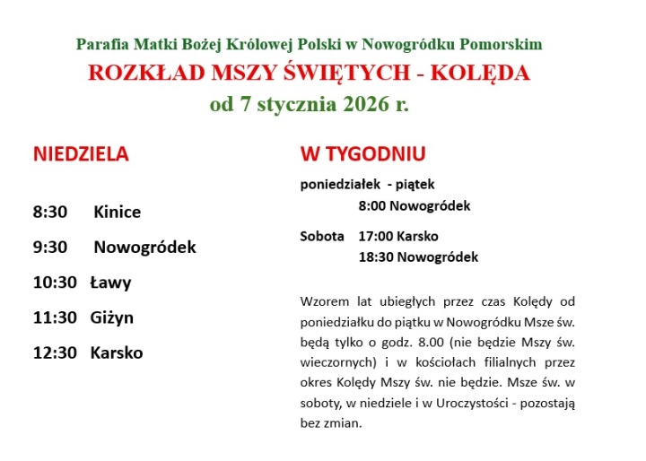 Już dzisiaj informujemy o nowym rozkładzie Mszy Świetych, kóry będize obowiązywał od 25 grudnia 2025 r. w naszej parafii